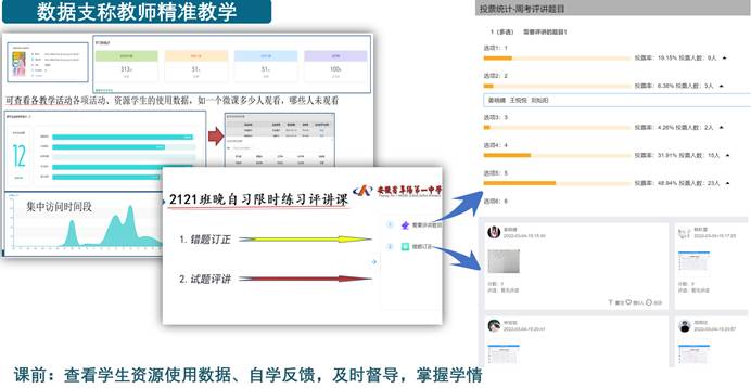 3教師依據(jù)本節(jié)課學(xué)生學(xué)情分層推送效果檢測(cè),學(xué)生答題數(shù)據(jù)詳情將及時(shí)反饋到教師端,使教師能夠精準(zhǔn)了解學(xué)生知識(shí)掌握情況及存在問(wèn)題。按照“三講與三不講”原則(“三講”即:講講重點(diǎn),講難點(diǎn),講易錯(cuò)、易混、易漏點(diǎn);“三不講”即: 學(xué)生已經(jīng)會(huì)的不講,學(xué)生自己能學(xué)會(huì)的不講,老師講了學(xué)生也不會(huì)的不講)來(lái)處理這些問(wèn)題。對(duì)于學(xué)生錯(cuò)誤率高的試題,教師會(huì)在課堂上采取集中講解方式,或邀請(qǐng)答對(duì)學(xué)生對(duì)全班學(xué)生進(jìn)行講解;對(duì)于錯(cuò)誤率低試題,答錯(cuò)學(xué)生可查看試題附帶解析,或?qū)ο嚓P(guān)知識(shí)重新學(xué)習(xí),教師不再進(jìn)行集中講解。