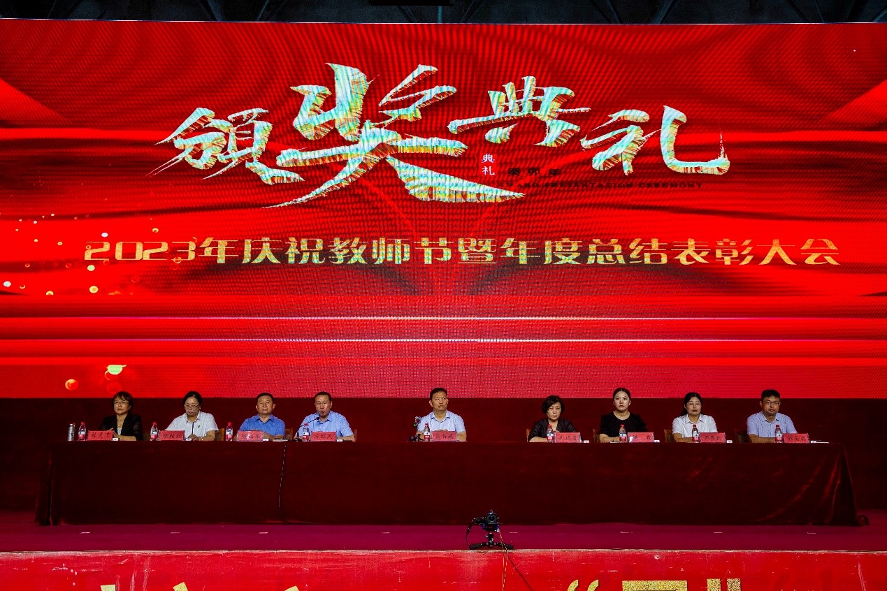 為表彰教育工作中凸顯的單位與個(gè)人,科達(dá)教育集團(tuán)于9月10日上午舉行了2023年慶祝教師節(jié)暨年度總結(jié)表彰大會(huì)。華科(鶴壁)集團(tuán)董事長(zhǎng)兼總裁宋書(shū)選、副總裁岳瑞霞,科達(dá)教育集團(tuán)董事長(zhǎng)姚霖、總校長(zhǎng)方紅民、副總經(jīng)理兼??h科達(dá)中學(xué)校長(zhǎng)陳紅軍、財(cái)務(wù)總監(jiān)尹翠紅,鶴壁科達(dá)學(xué)校校長(zhǎng)雒顏紅,??h科達(dá)小學(xué)總校長(zhǎng)兼北校區(qū)執(zhí)行校長(zhǎng)郭英賓,??h科達(dá)學(xué)校執(zhí)行校長(zhǎng)杜靈芝出席大會(huì),與科達(dá)教育集團(tuán)所屬四校全體教職工、北京東方科達(dá)教育科技公司研究院成員及教育集團(tuán)各部門(mén)共千余人歡聚一堂,共慶節(jié)日,共話美好未來(lái)。