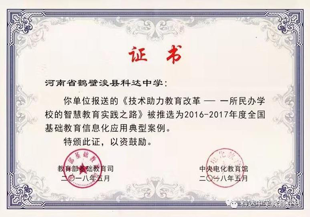 2018年,ESWI智慧教育聯(lián)盟在鶴壁成立、ESWI亮相首屆數字中國建設成果展、翌思維實驗校-科達中學入選“2016-2017年度基礎教育信息化應用典型示范案例集”,全國首批僅有16所……